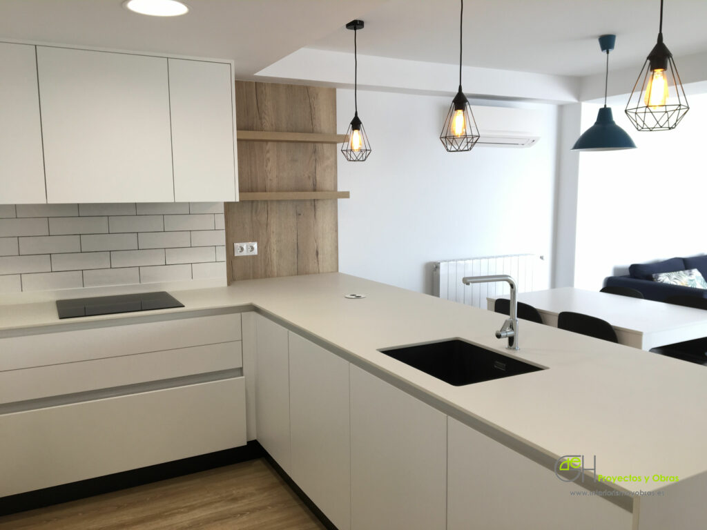 En este proyecto se cambió por completo la distribución de origen, localización de la cocina, pasillo y distribución de habitaciones y baños.